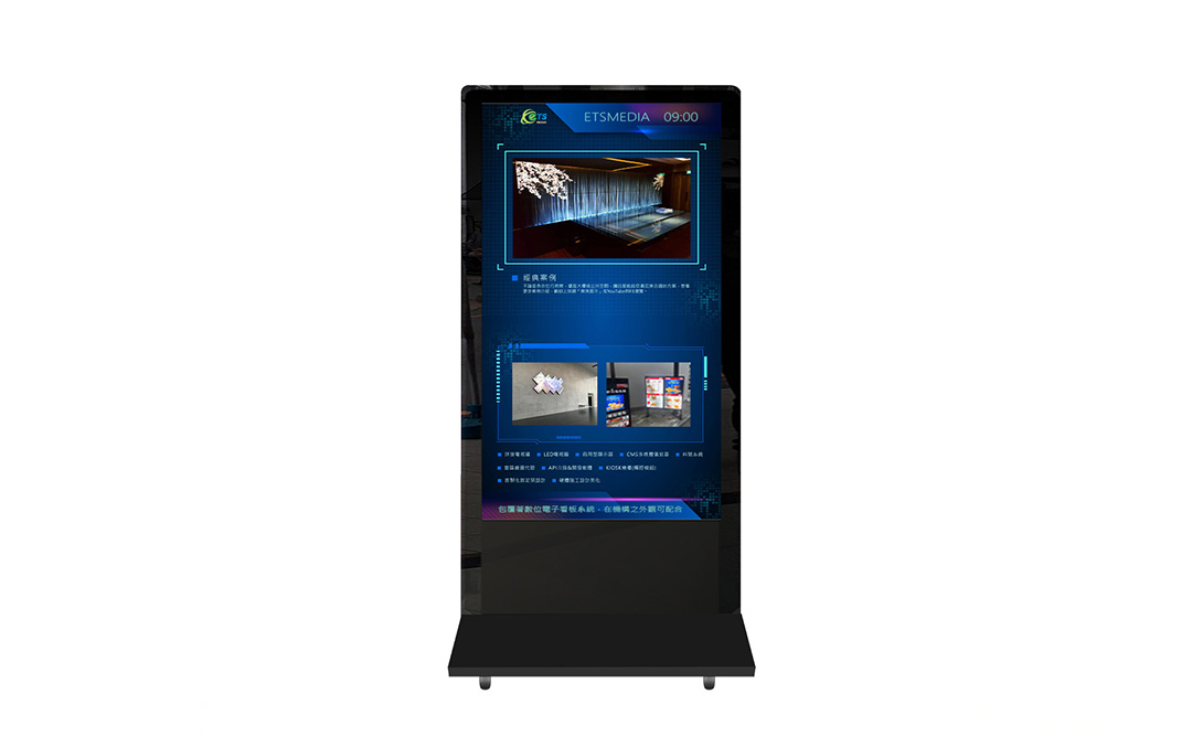 電子看板機櫃配備高解析度顯示螢幕,能清晰呈現多媒體內容,包括視頻、圖片和文字,有效吸引顧客的注意。
